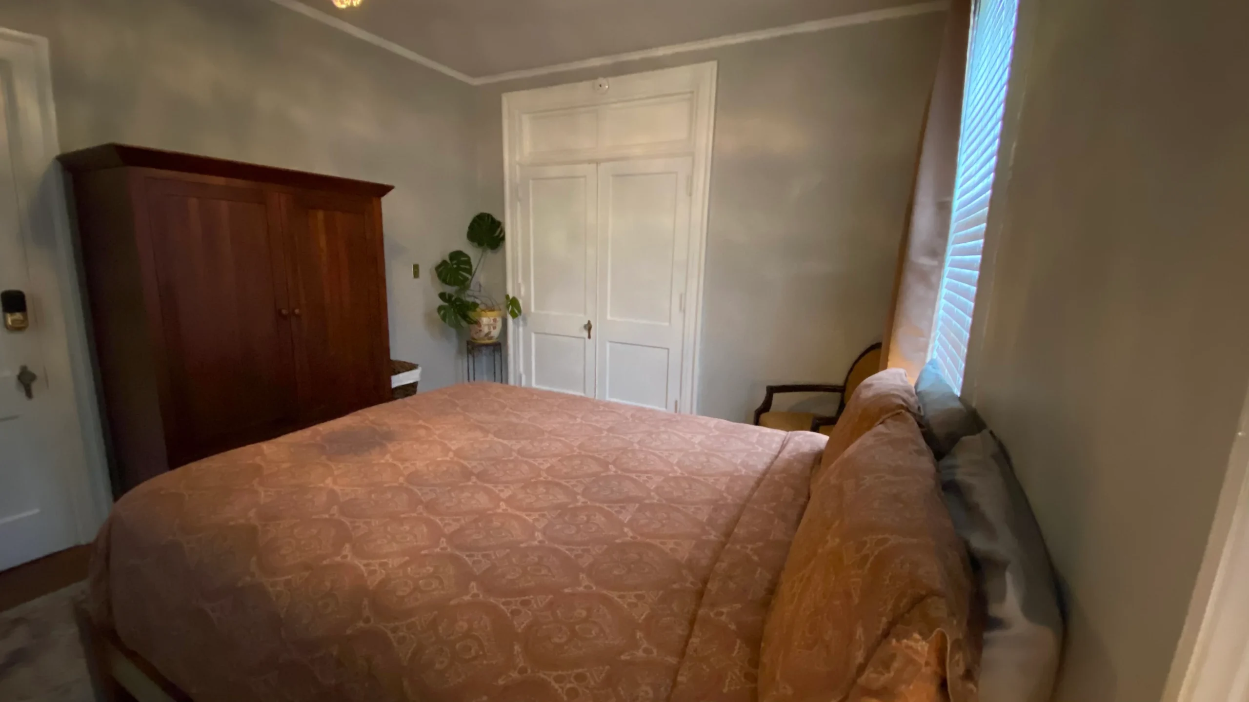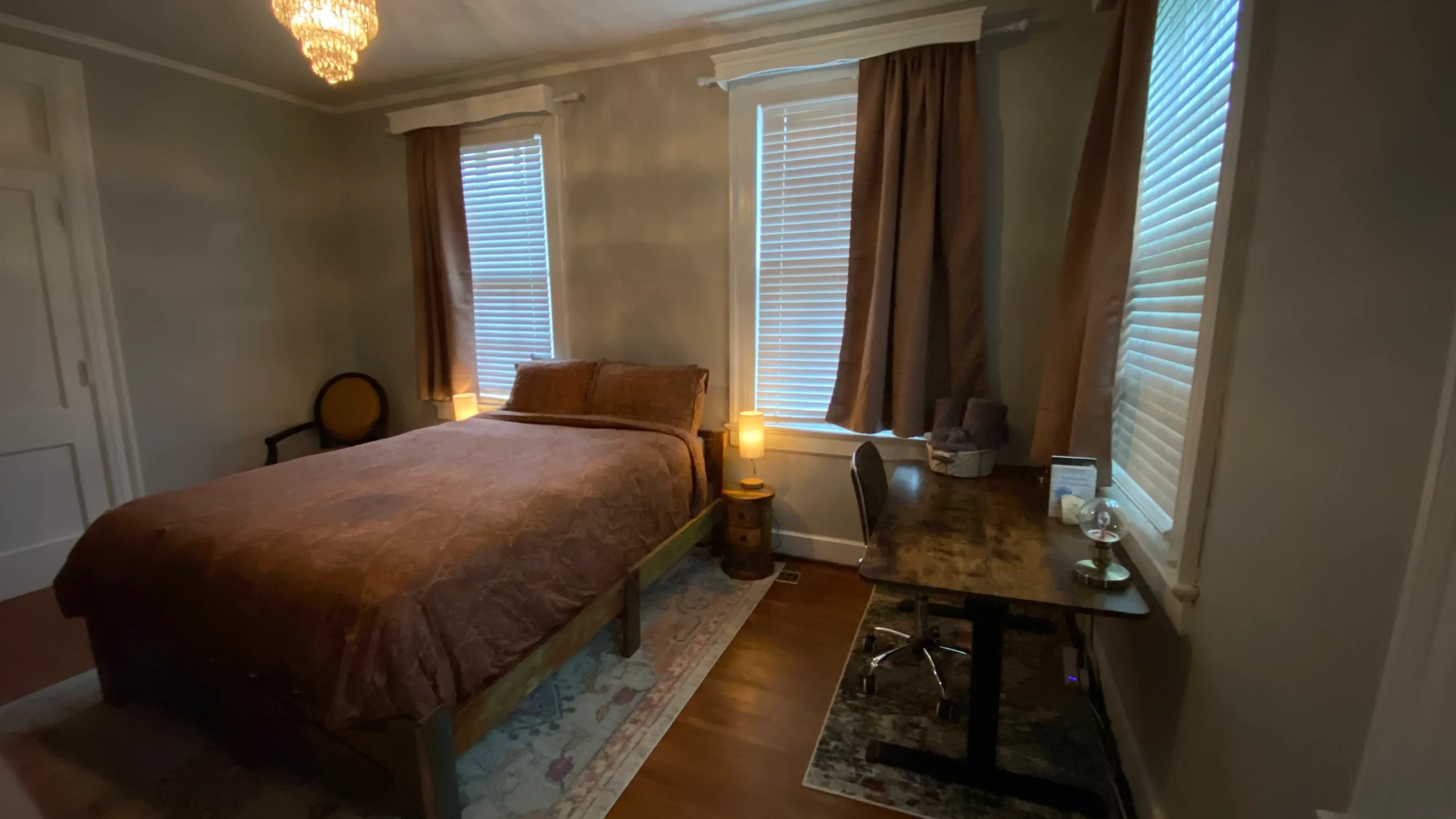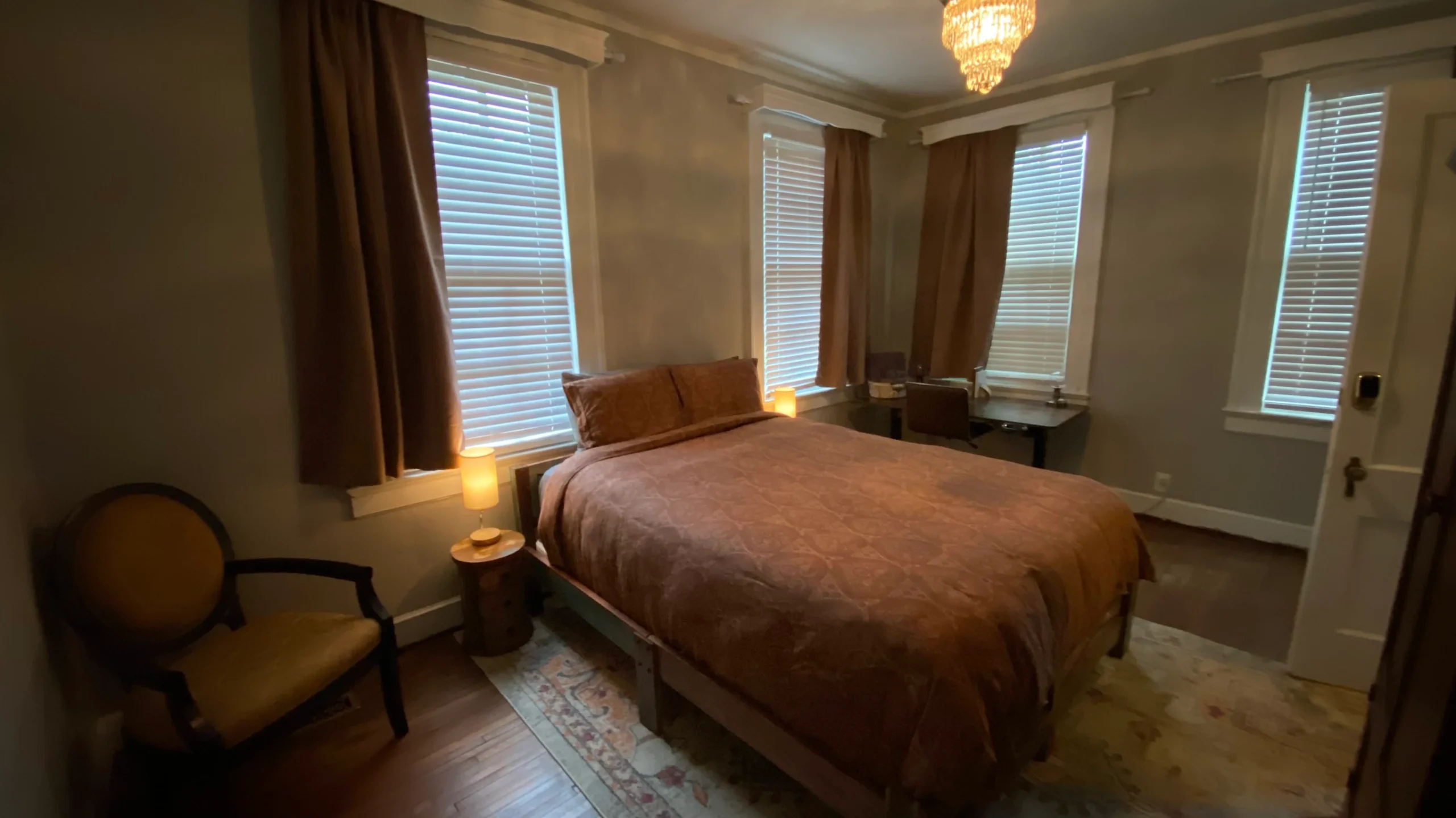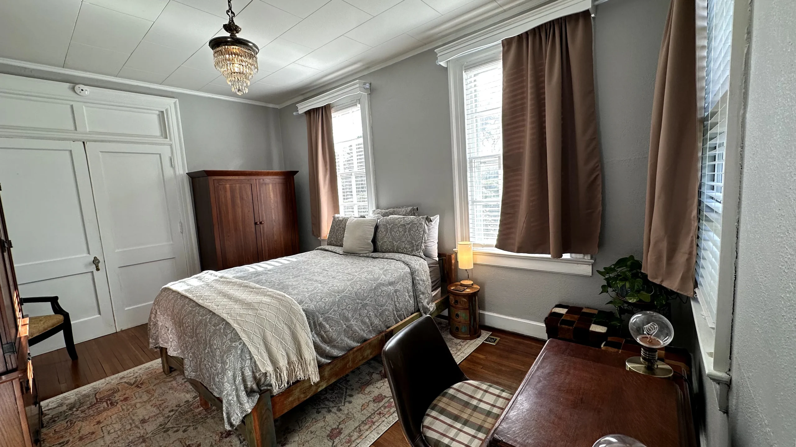 This 1st-floor room sleeps 1 and features original wood floors. Guests enjoy access to all mansion common areas, including the formal dining room, living room, and outdoor patio. High-speed WIFI, a private parking space, and laundry facilities are all provided.
