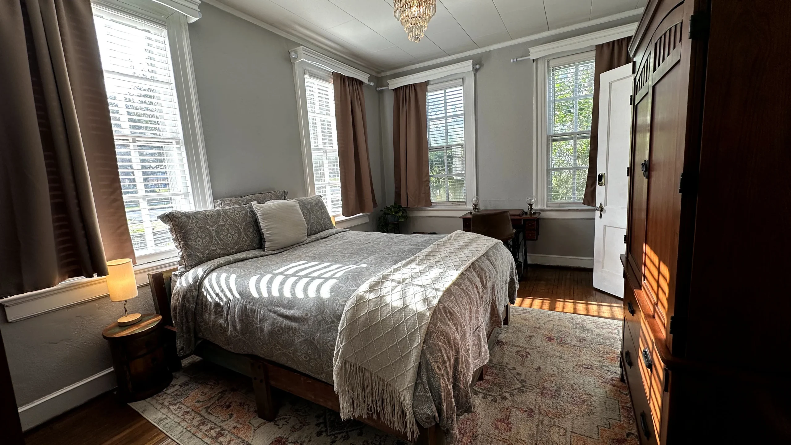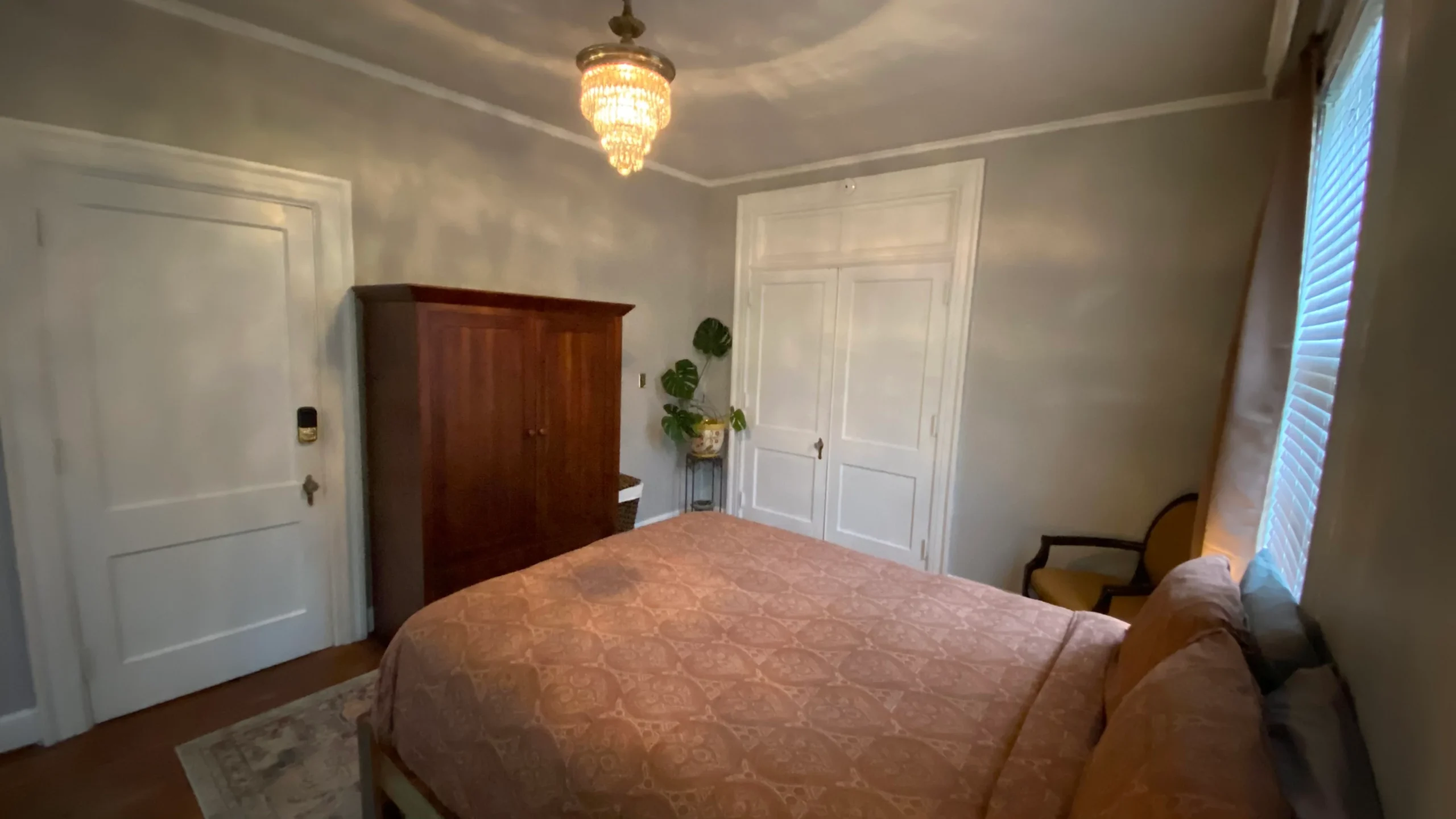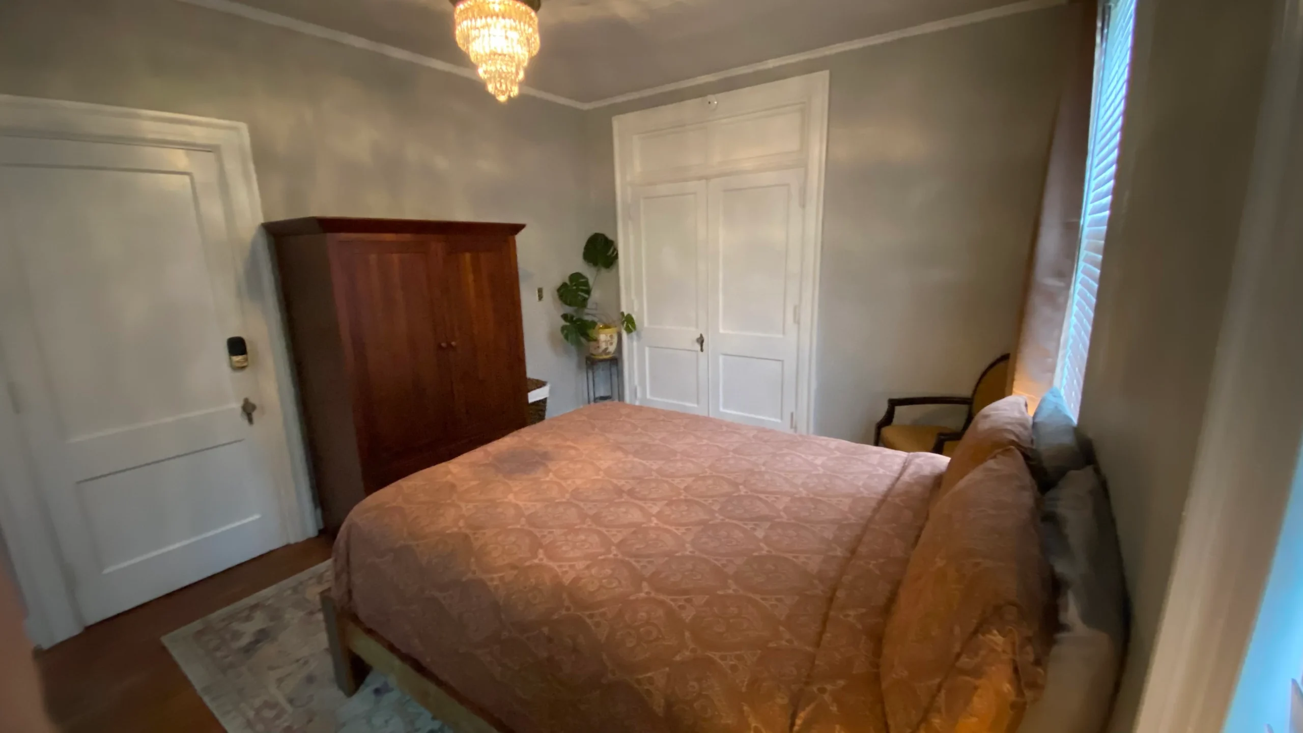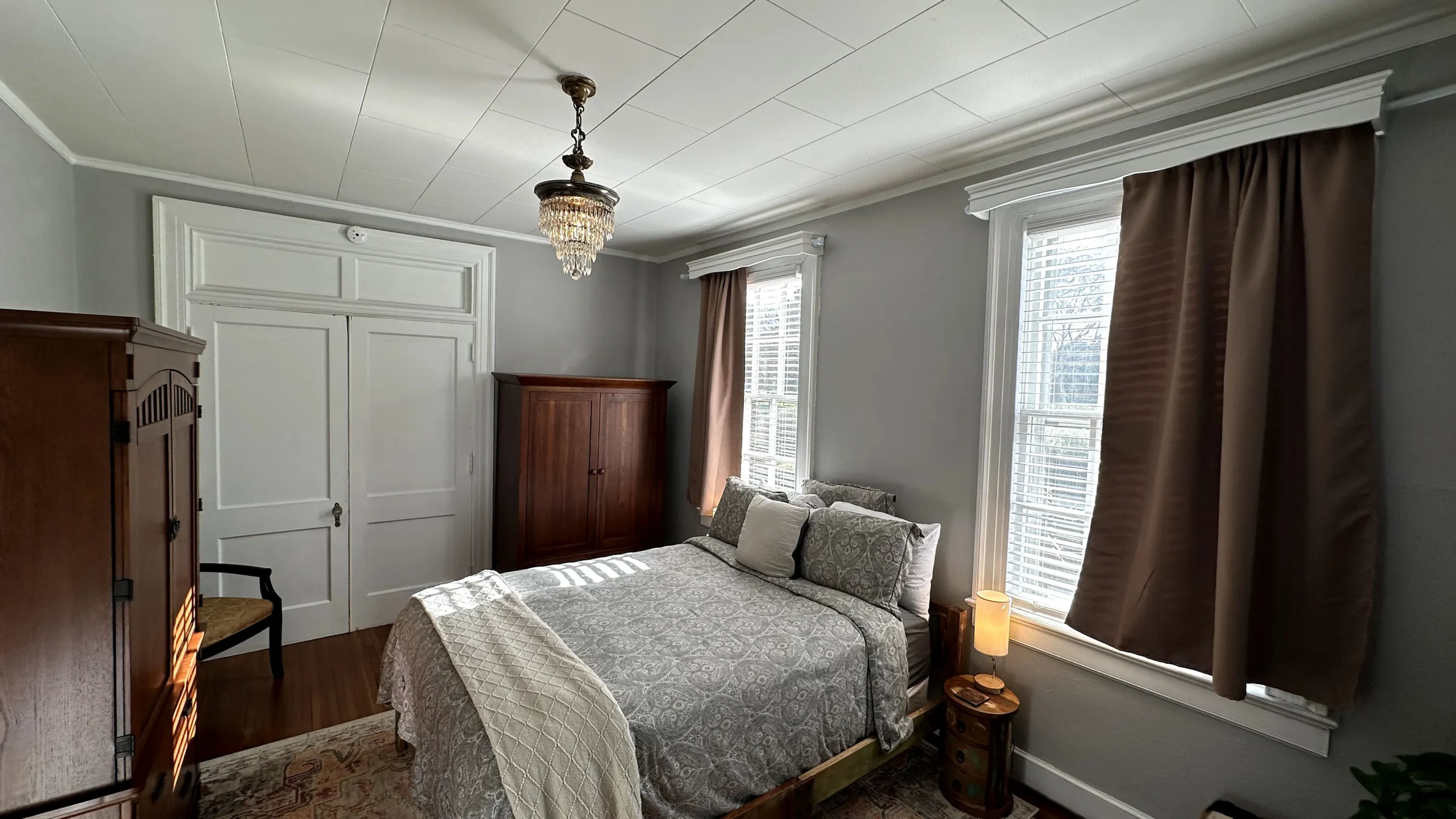 This 1st-floor room sleeps 1 and features original wood floors. Guests enjoy access to all mansion common areas, including the formal dining room, living room, and outdoor patio. High-speed WIFI, a private parking space, and laundry facilities are all provided.