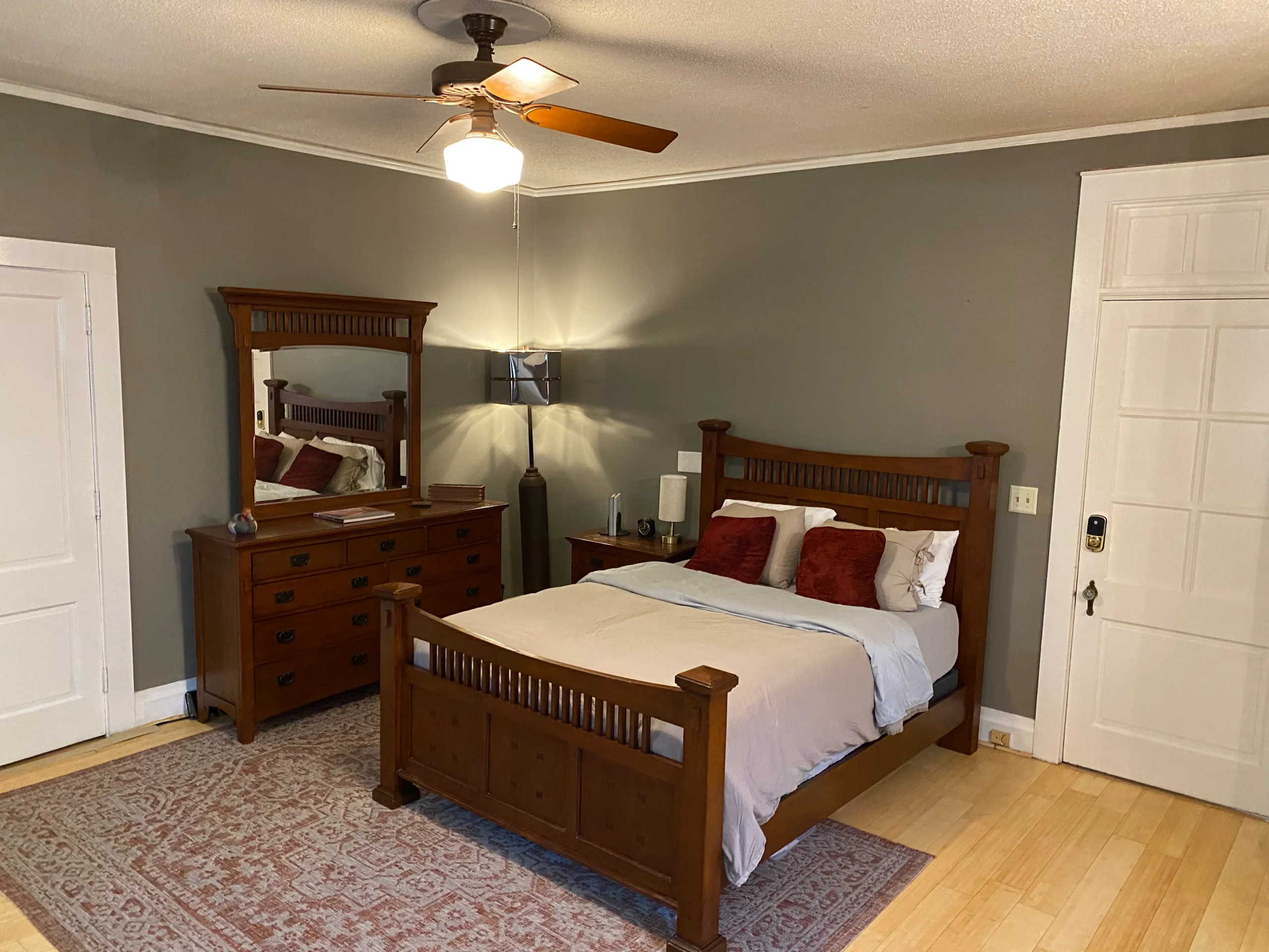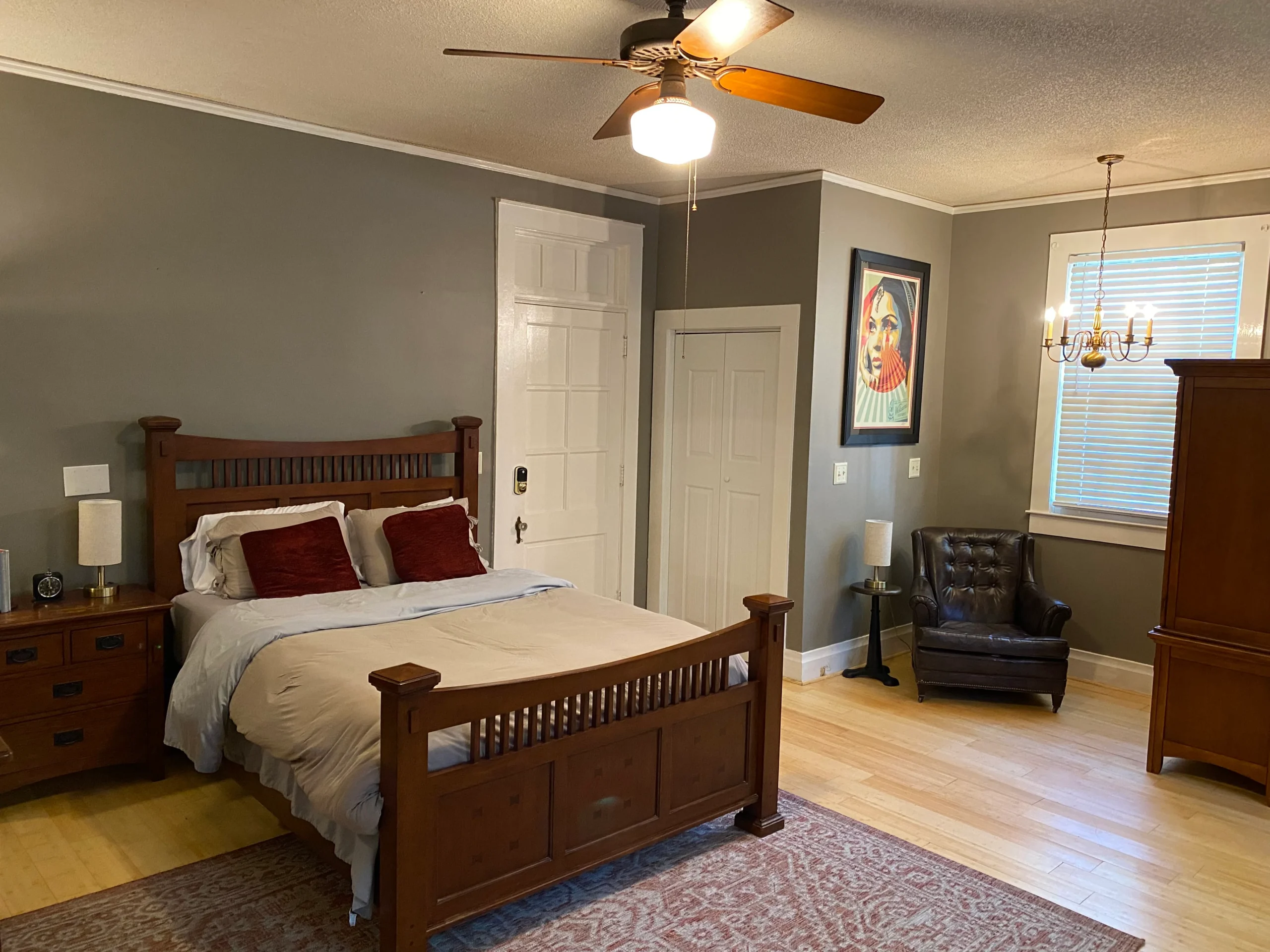 Located on the 1st floor, this room sleeps 2 and offers a private entrance and an attached private full bathroom with a bathtub. The room features bamboo floors and generous closet space. Guests have access to the formal dining room, high-speed WIFI, and regular housekeeping.