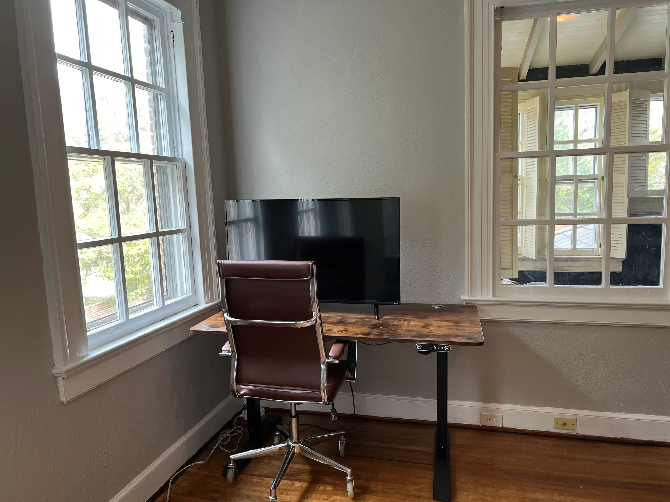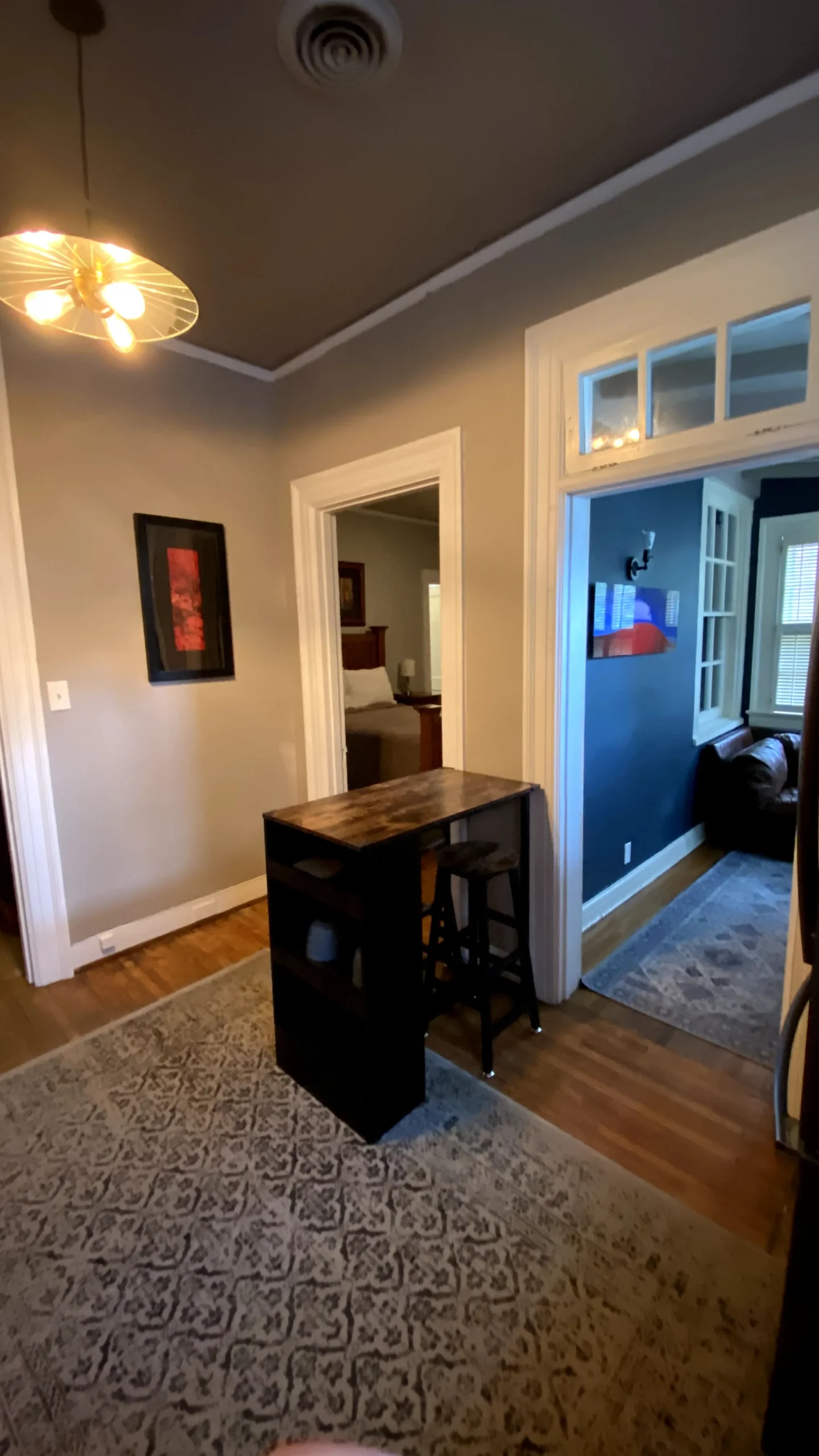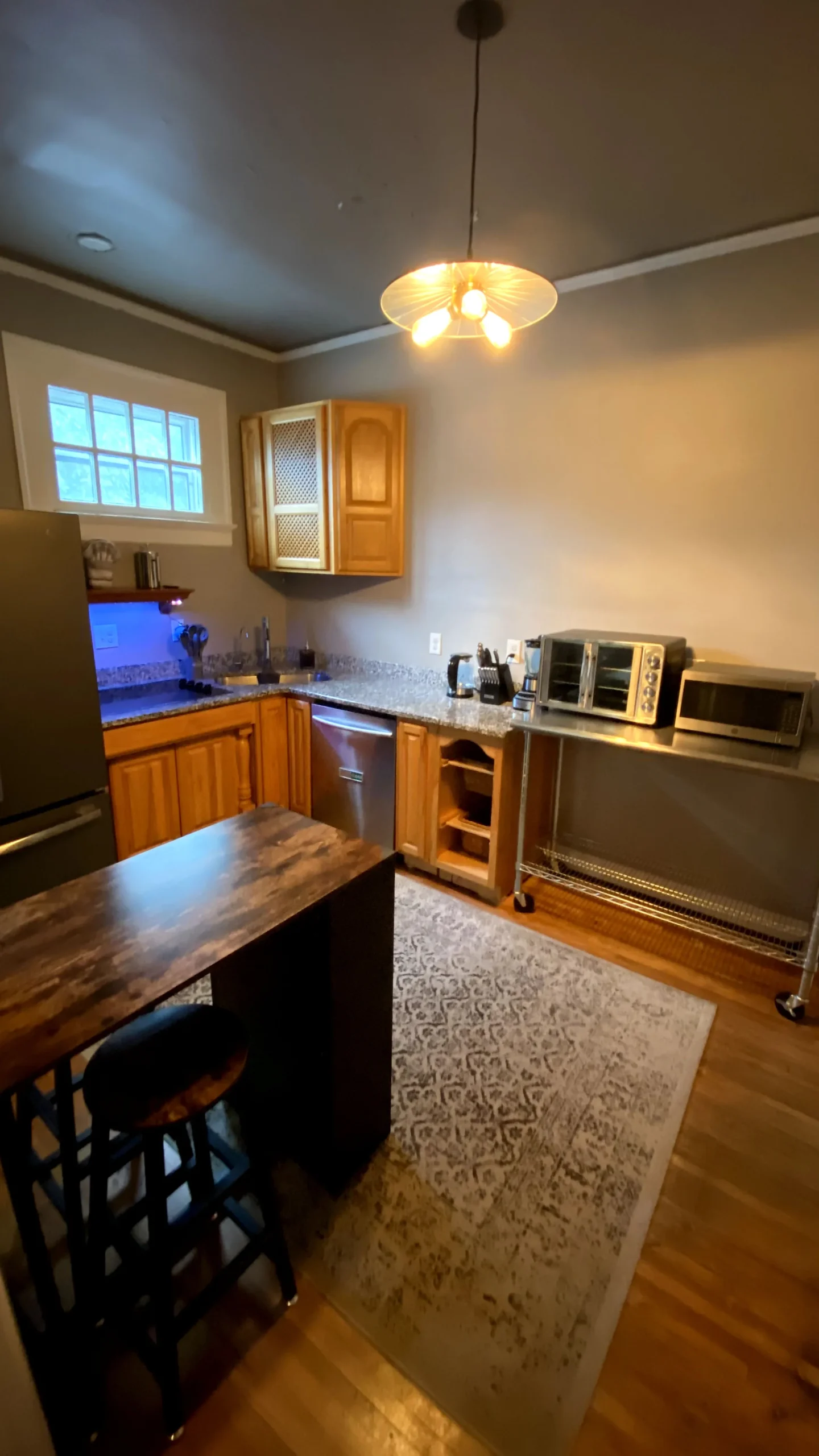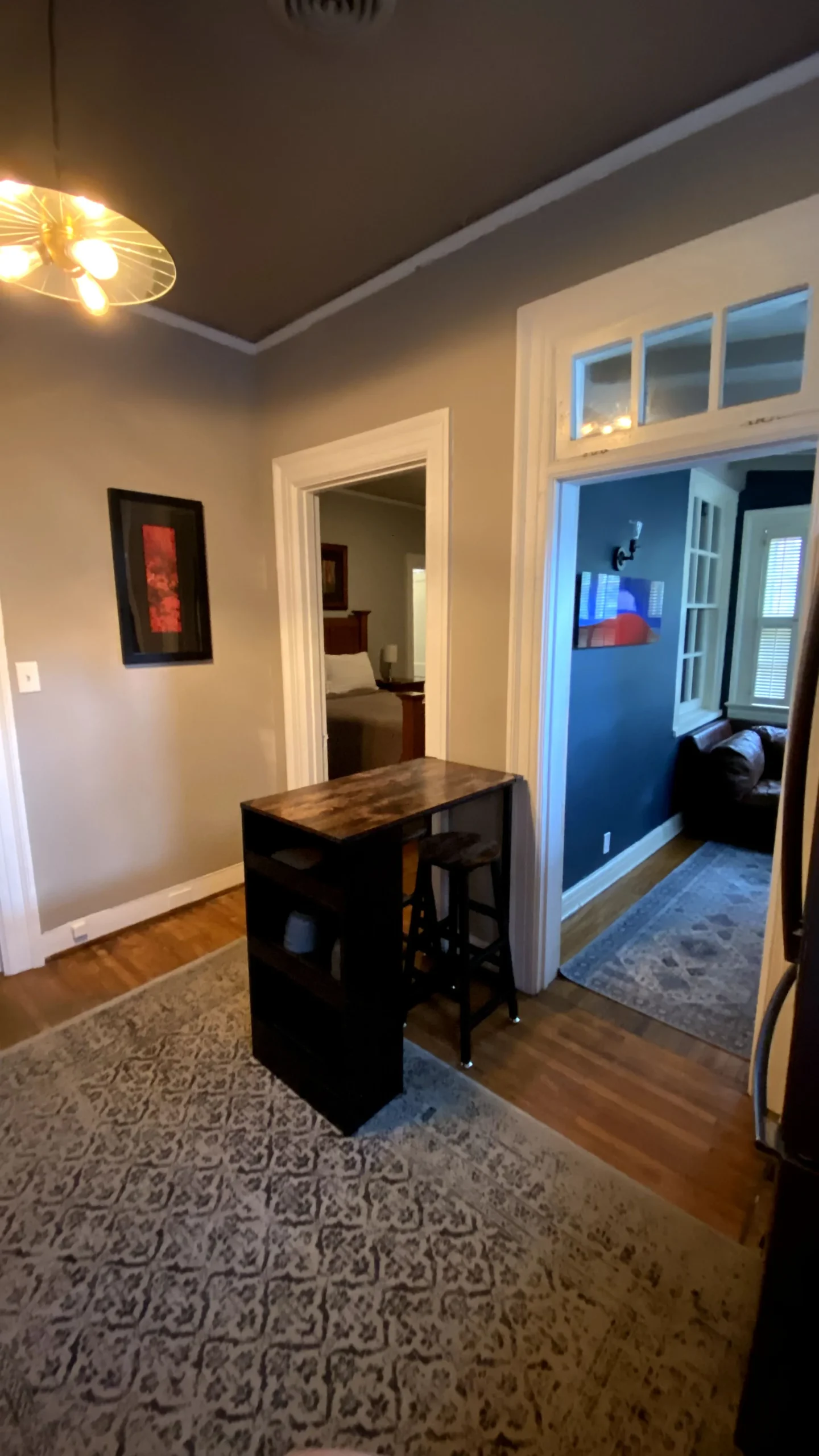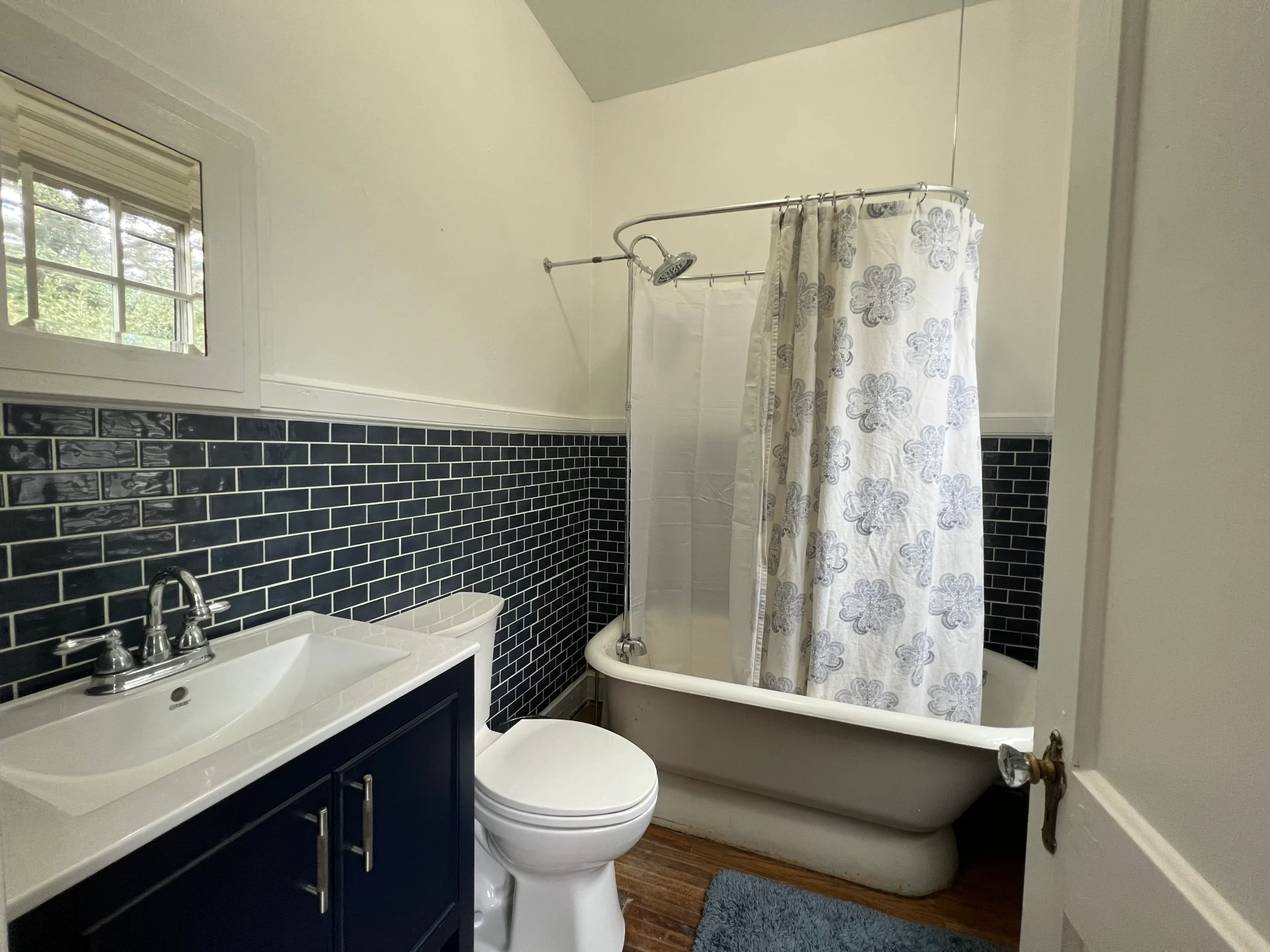 This 2nd-floor room sleeps 2 and includes a private eat-in kitchen and a separate sitting room. It features a private full bathroom with a pedestal tub and original wood floors. Guests also have access to the mansion's formal dining room, high-speed WIFI, and laundry facilities.